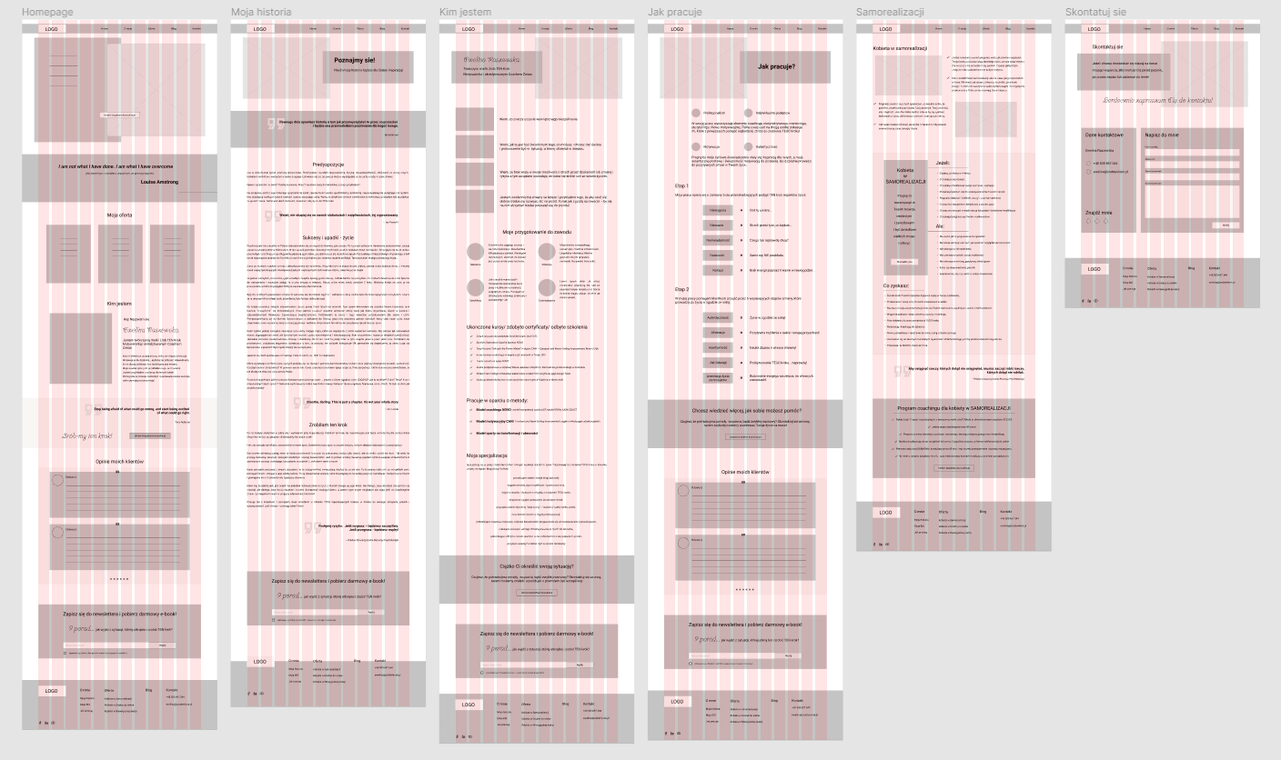 Wireframes were built based on the design system, so when the color pallet was chosen, I made a quite quickly high-fidelity design. Crucial was the picture selection - I spent some time looking for proper feminine imagery. The majority of pictures were adjusted in Photoshop to match the design.
