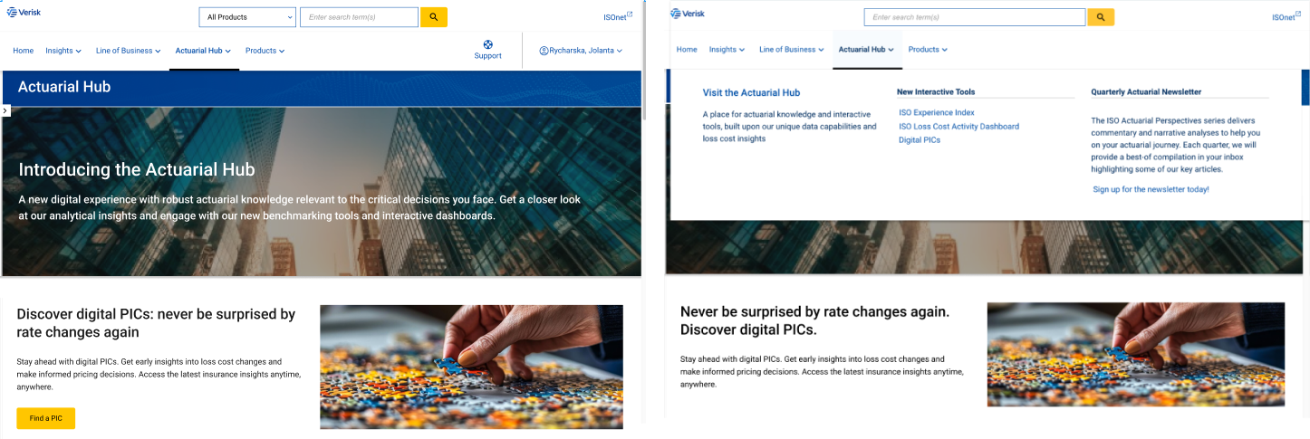 Actuarial Hub: A dedicated section for the Preliminary Indication Center (PIC) will be featured on the Actuarial Hub page, with direct access available through the main navigation bar.