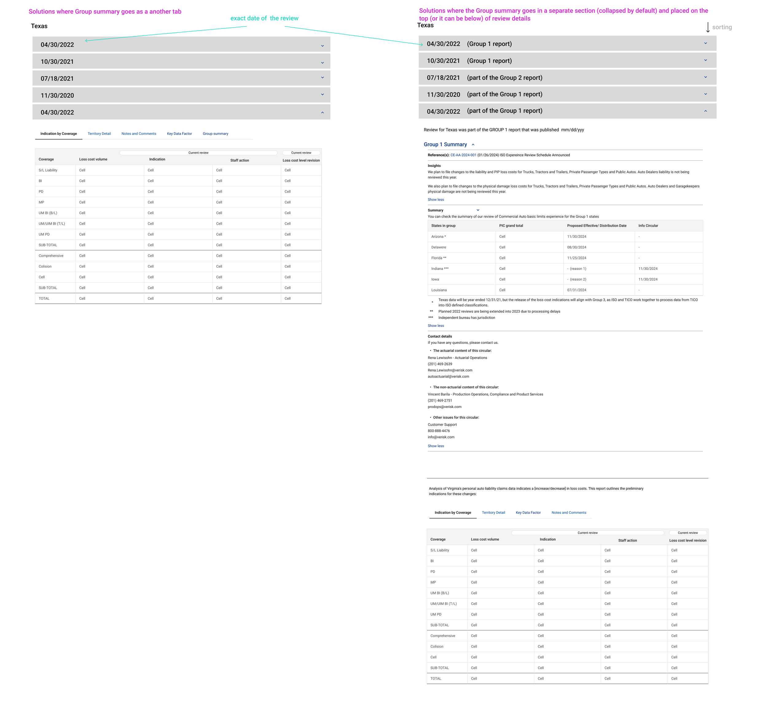 Discussion with product team resulted in decision that is worth to ask Verisk clients which aggregation method they see better. For that purpose I prepared two versions of mocks set.