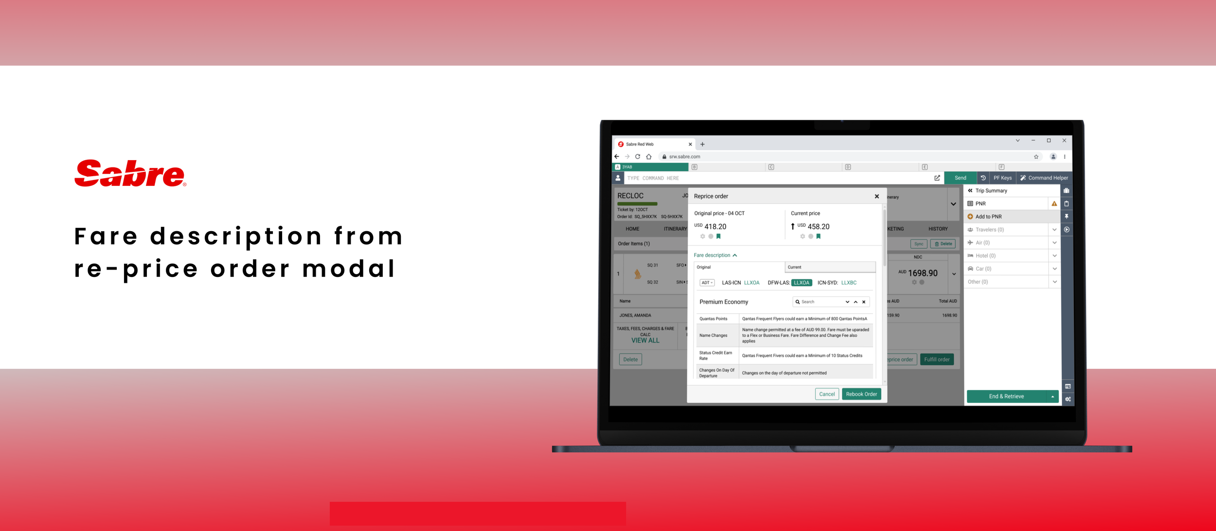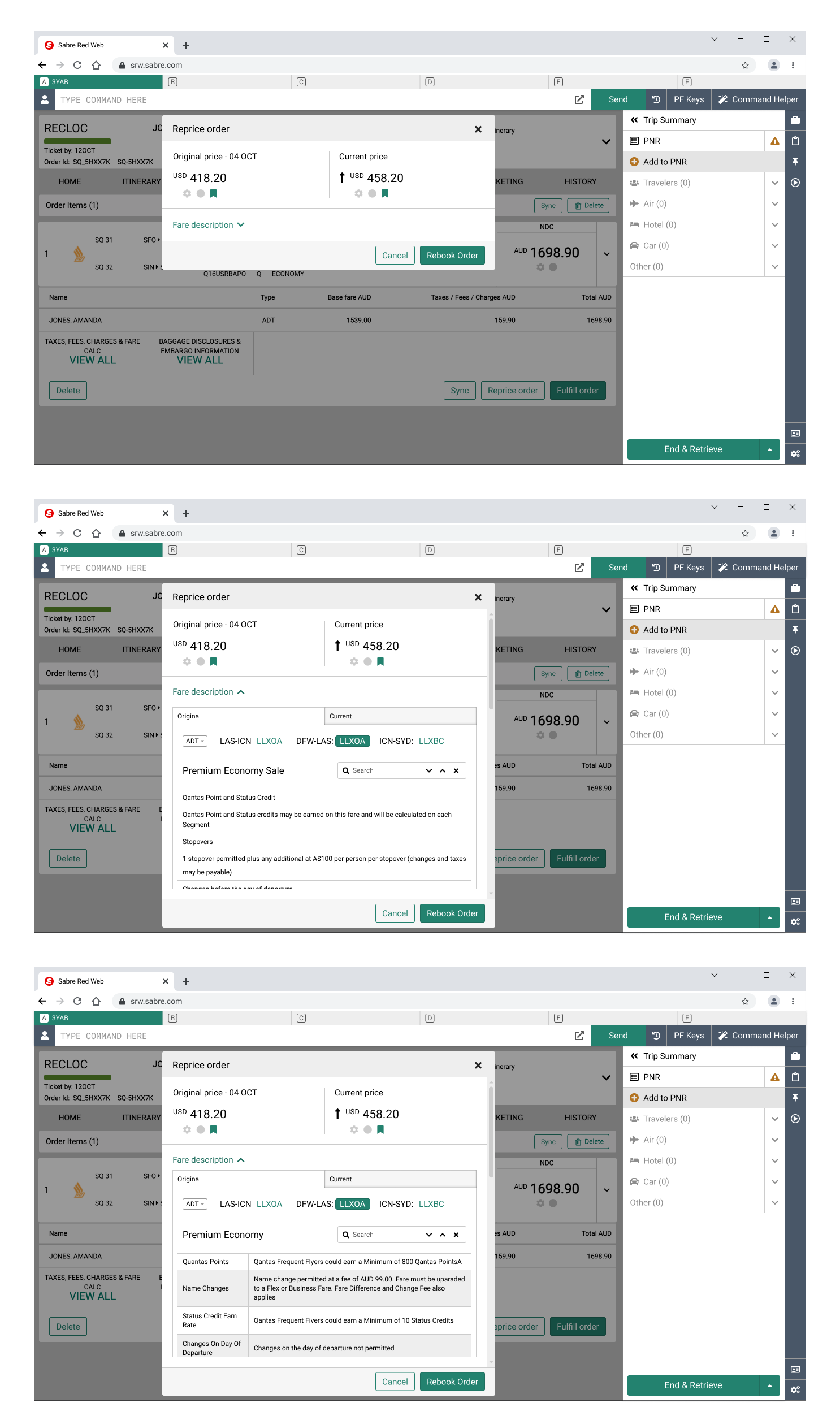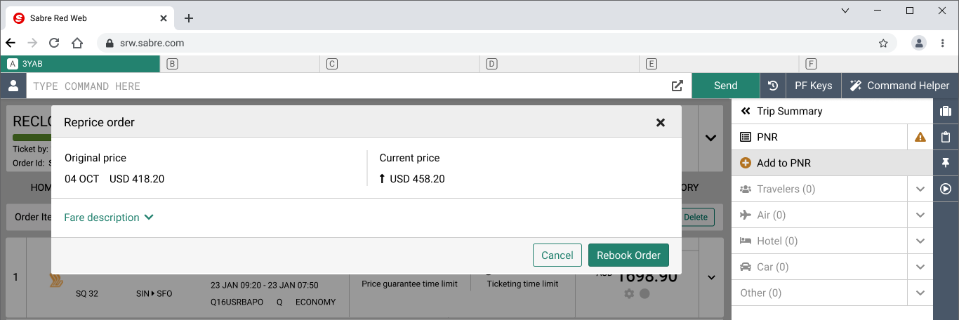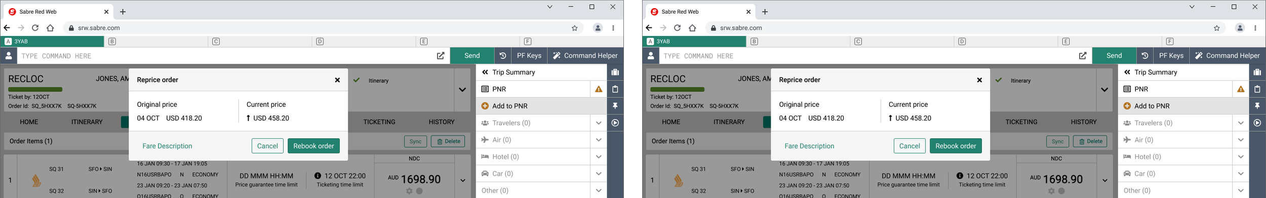 The solution: Provide a function that will allow travel agents to check and compare the details of the order that has been already created against the current offer.