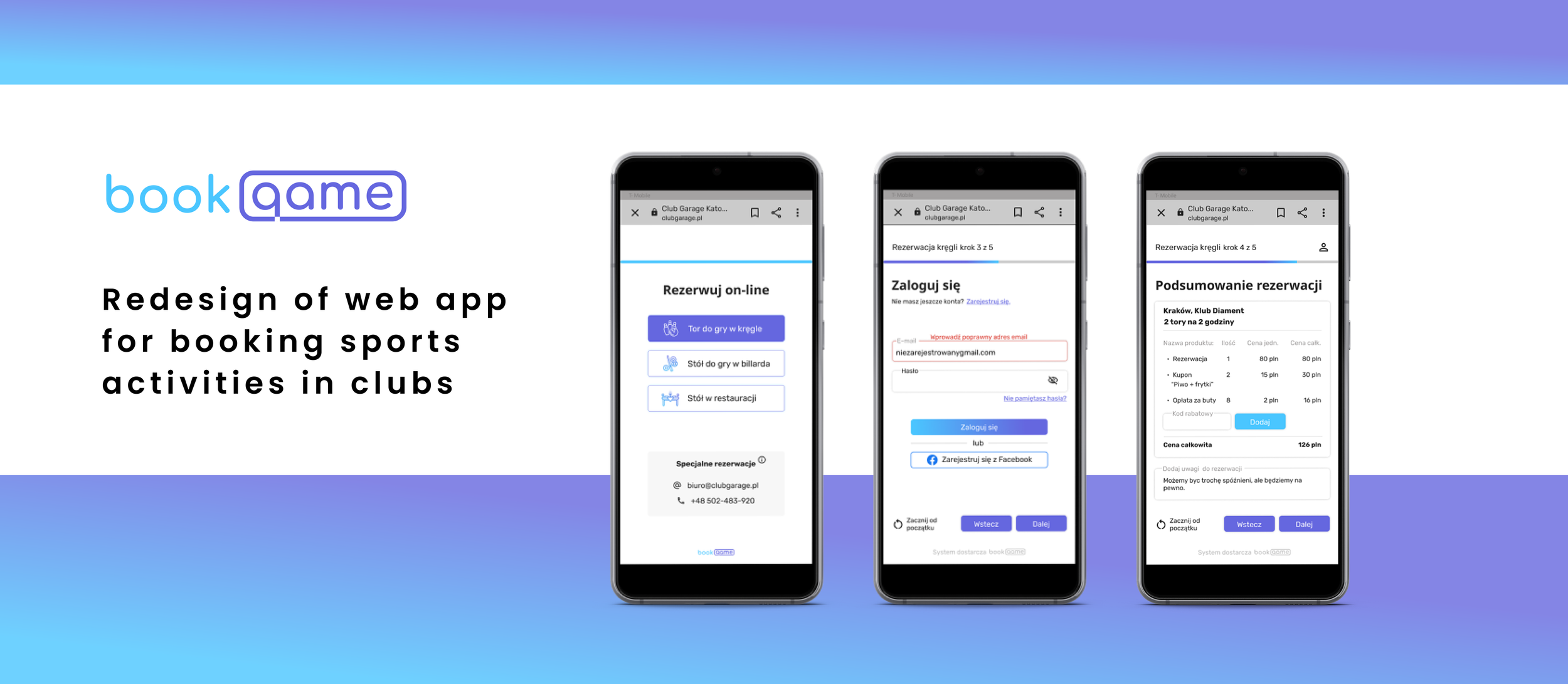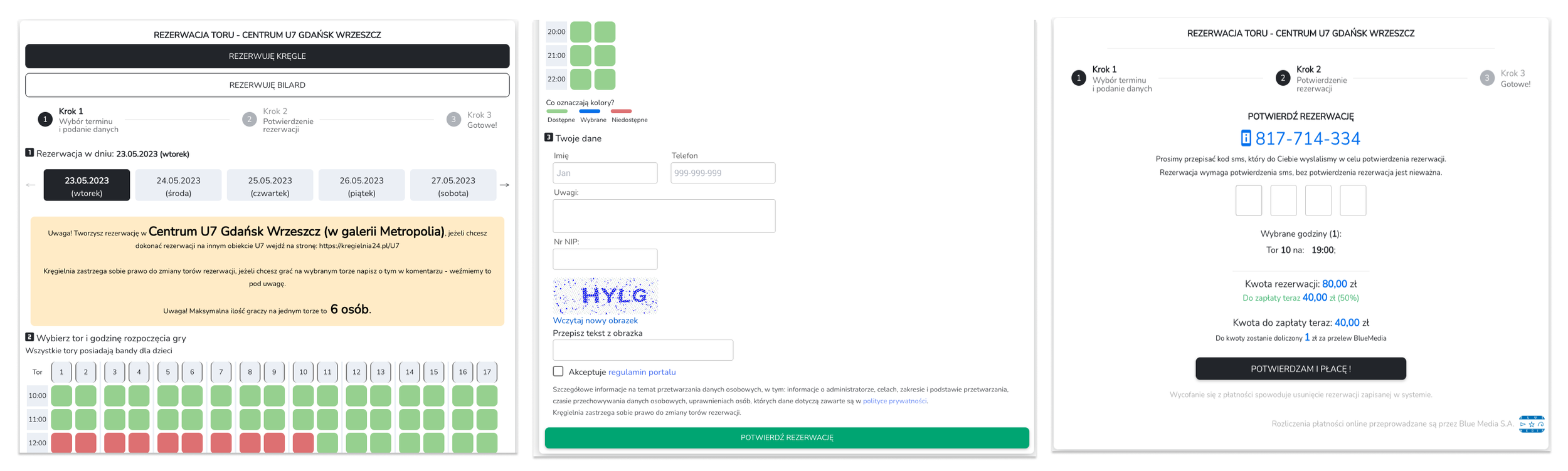 On the Polish market, Book-game has one competitor, kregielnia24.pl. I have checked their reservation flow and found that it offers a better user experience. The reservation is split into steps, which helps users to know what they are doing at each stage. At the end of the process, users receive confirmation that their reservation has been successfully completed.