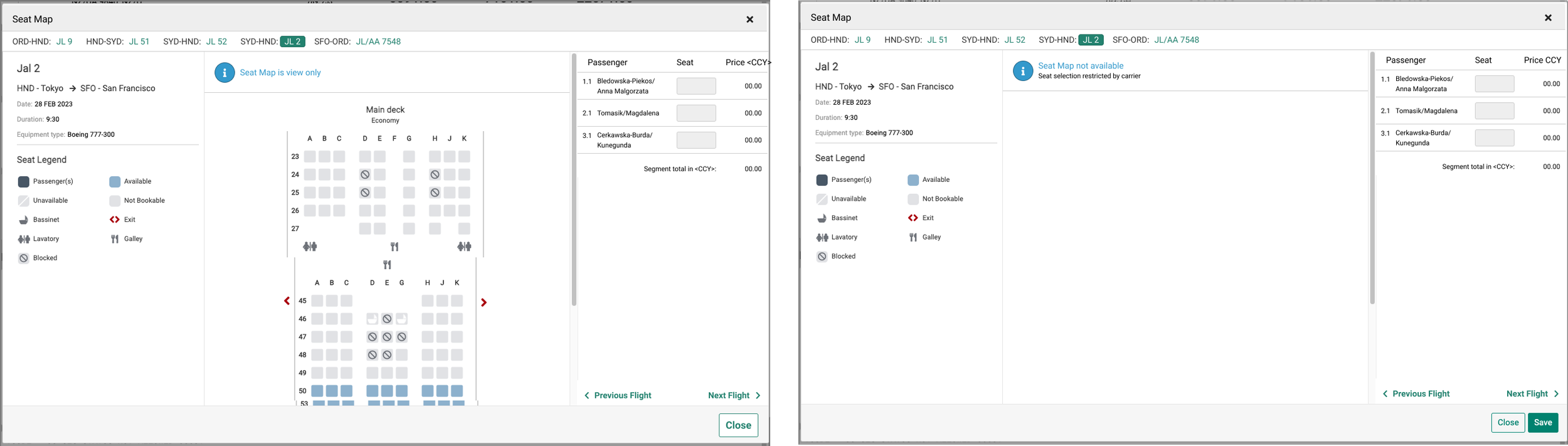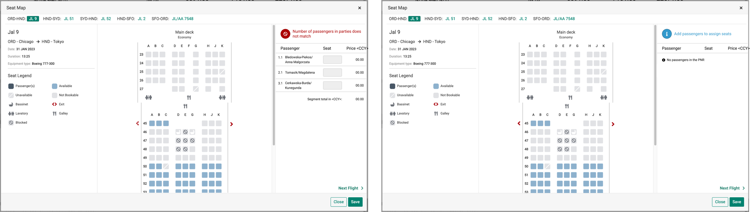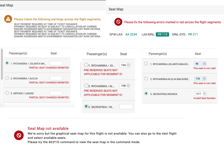 the system does not indicate if and which seats were already reserved when launching the seat map or when navigating between seat map screens - we do not see anything that would be a suggestion for what was done