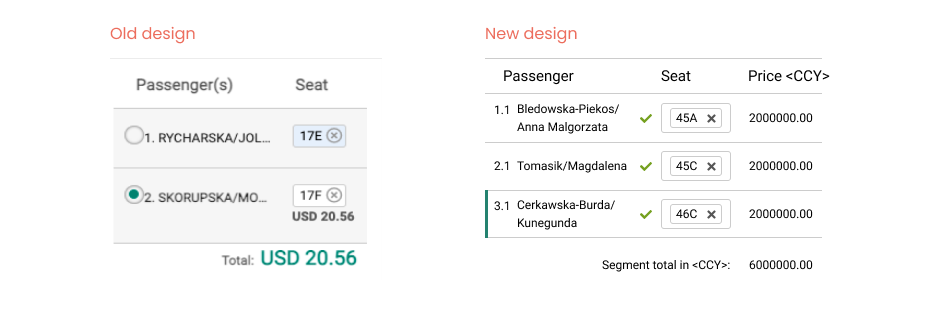 New interaction shows if the seat was reserved or not. As was mentioned before - we do not use a success message for this. Instead, I have suggested using the icons next to the text field with the seat number. Because of this, I had to think about a new design for the passenger area.