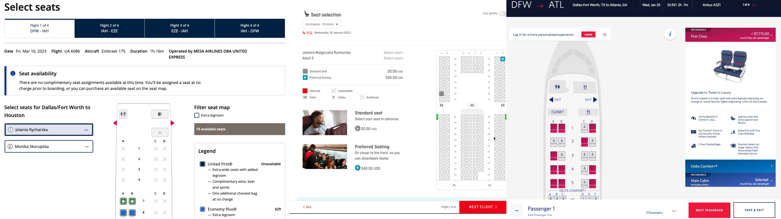User challenges: The process of seat reservation is incremental and can be done in many different ways. The main pain points that had to be addressed: